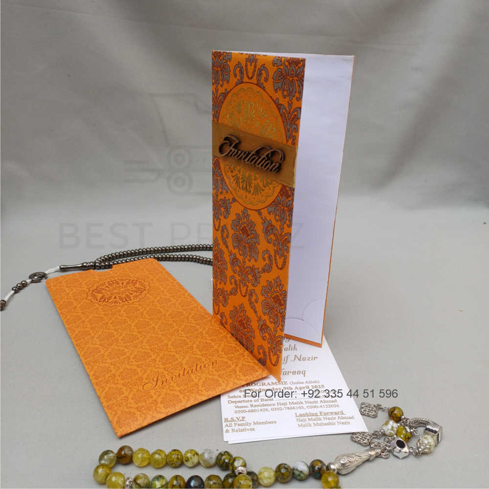 Celebrate your special day with warmth and grandeur through our Elegant Golden Orange Wedding Invitation Card, a radiant design that beautifully blends tradition with luxury. The rich golden-orange hue symbolizes joy, celebration, and prosperity, making it a perfect choice for vibrant Pakistani wedding festivities.