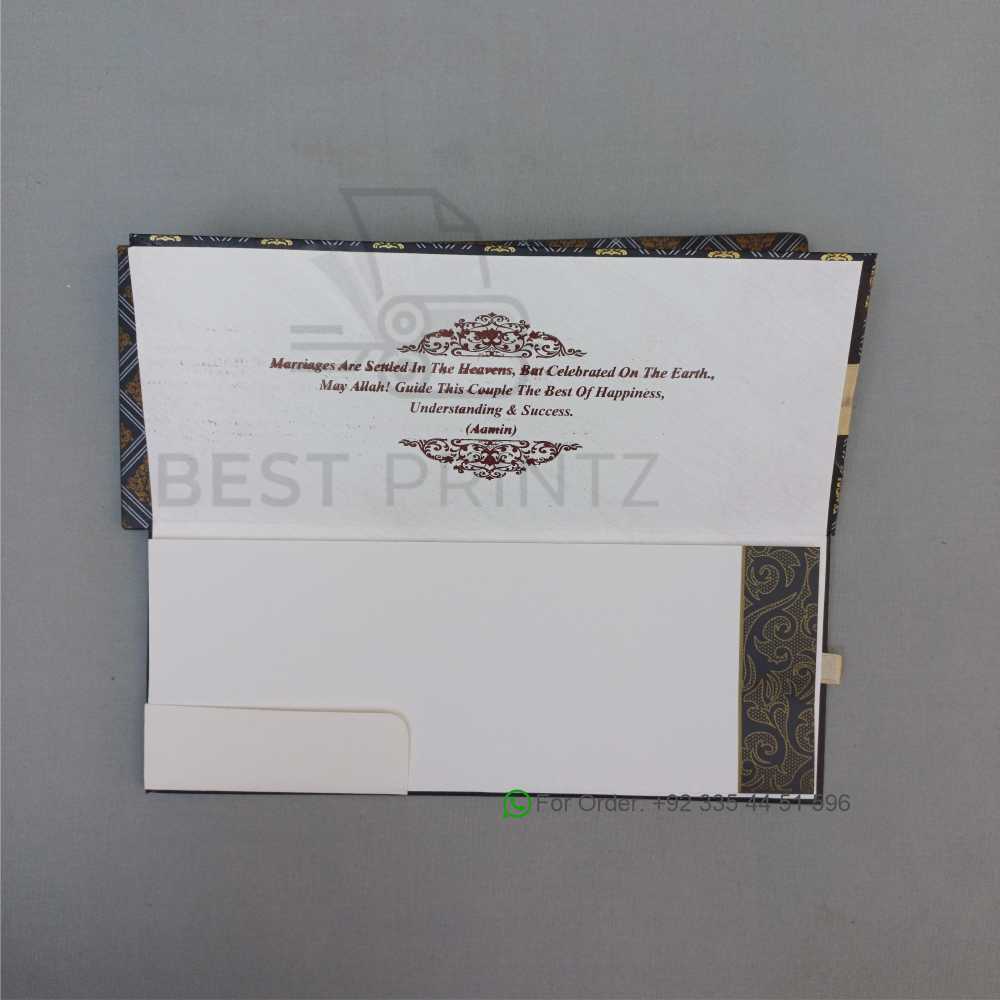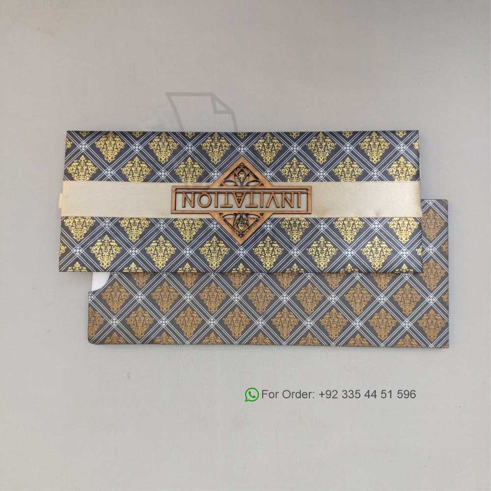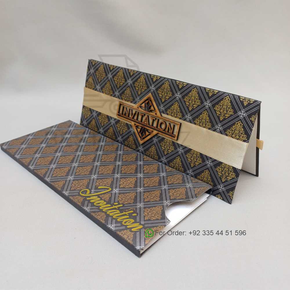 Make a stunning first impression with this exquisitely designed luxury wedding invitation. This elegant set features a striking deep black and gold damask pattern, complemented by a sophisticated cream satin ribbon and a 3D “Invitation” emblem. Whether you are searching for wedding cards in lahore or looking for the finest wedding cards in pakistan, our collection offers unmatched premium quality and craftsmanship.