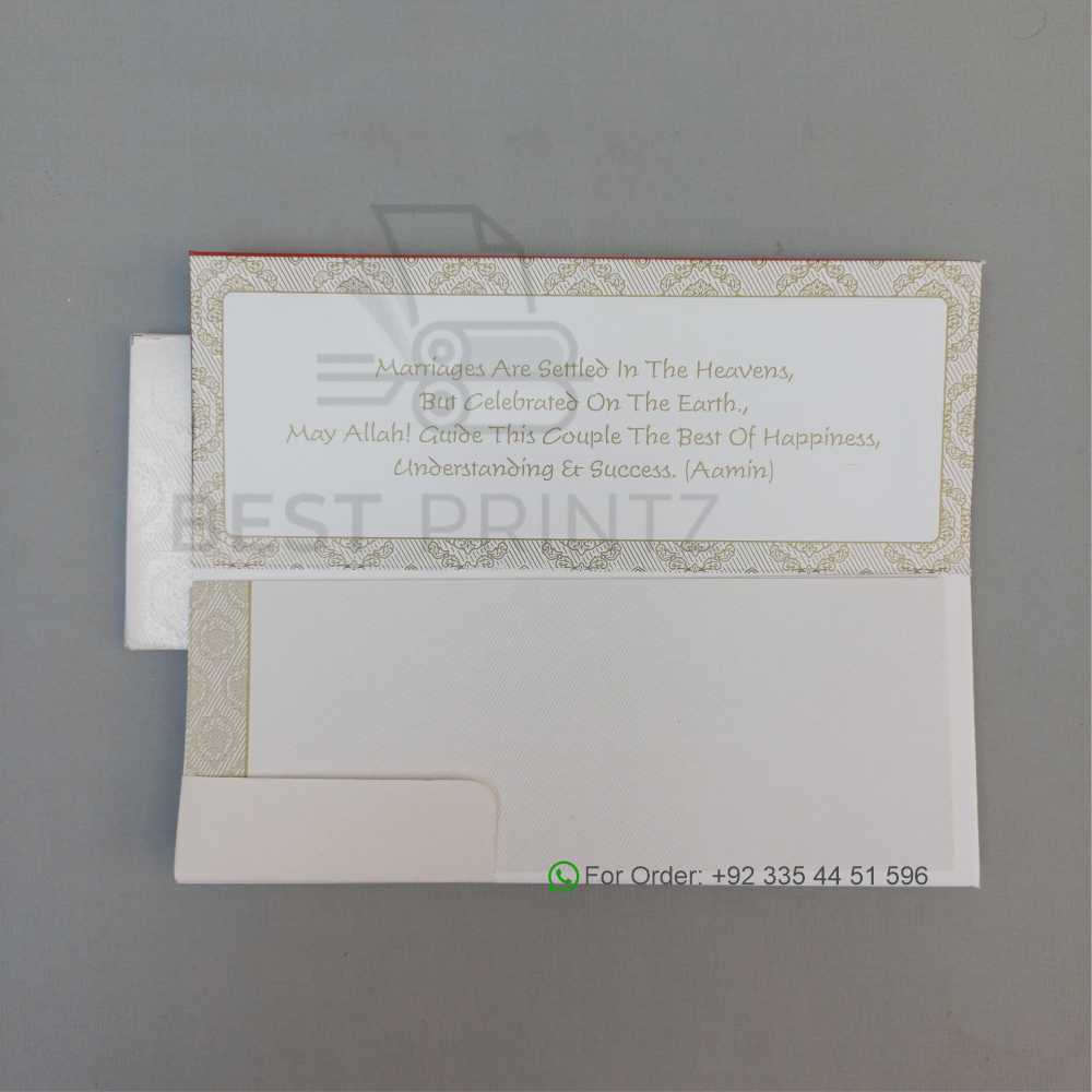 Available with Single Inner! Need an Extra Inner? Message us on WhatsApp.a white and gold wedding invitation card featuring an elegant gold border.