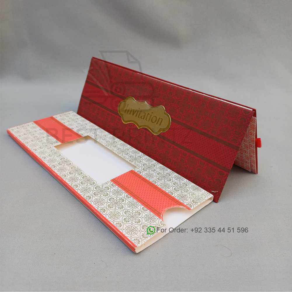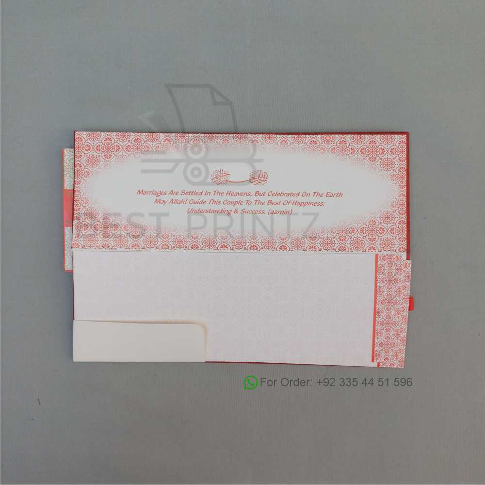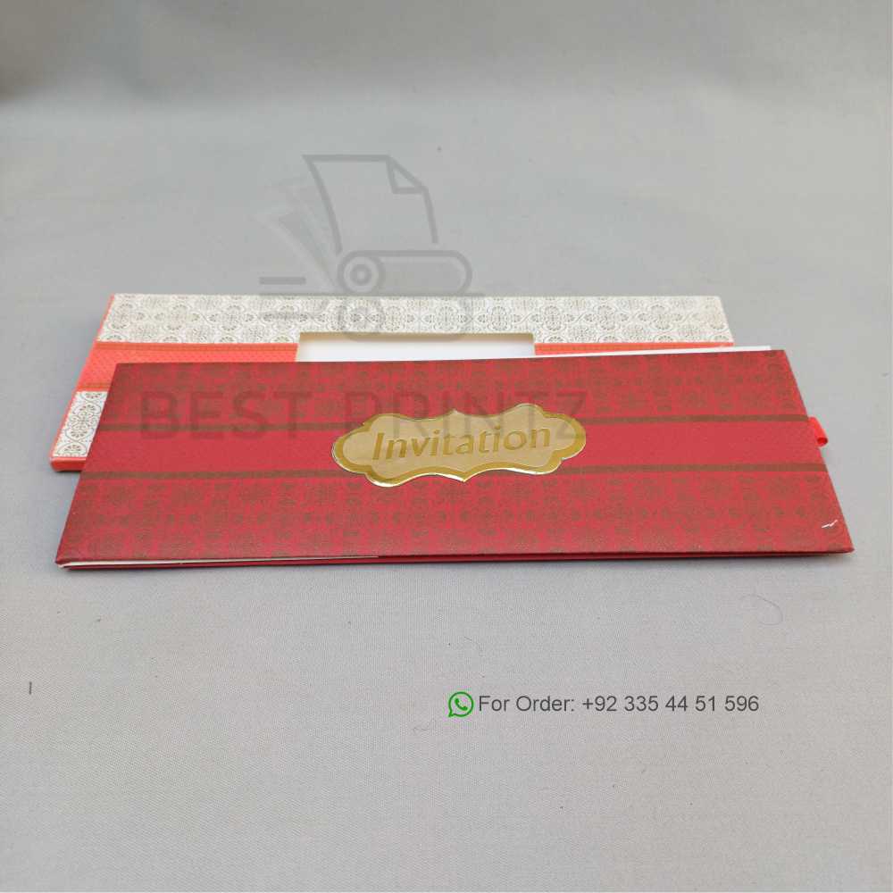 Celebrate your special union with this exquisitely designed luxury wedding invitation. This elegant set features a premium white textured card with a striking red “Invitation” insert and a matching presentation sleeve with a stylish rectangular window. Whether you are searching for wedding cards in lahore or looking for the finest wedding cards in pakistan, our collection offers unmatched premium quality and craftsmanship.
